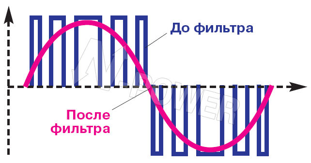 - НЧ ШИМ (Low Frequency PWM) – применяется в линейно-интерактивных ИБП с аппроксимированной синусоидой